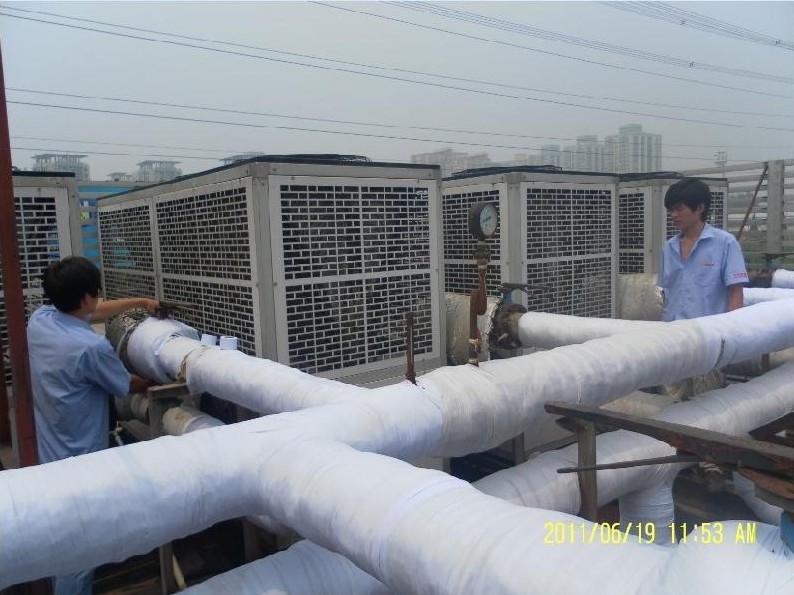 取样分析垢锈成份→核定水量→投药→循环10小时左右→排污→人工辅助清洗→清水循环→预膜→排水→结束。污垢严重的中央空调系统,经开利化工清洗后效率可提高20%—30%。