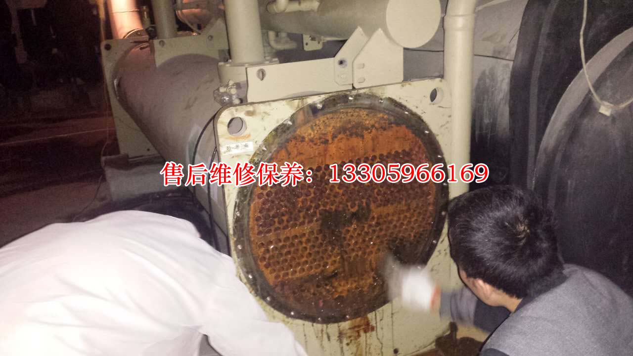 通炮是指,清洗中央空调的冷却水炮,管壁粘附类似泥浆的微颗粒物质。铜管会受运行时间和水质影响,管壁粘附的物质也越来越多,导致其冷热交换效率慢慢下降,产生高压 压力慢慢增大,设备负荷也随之慢慢增大。清洗冷凝器和蒸发器水路累积到一定程度时,就要通炮。一般清洗的条件,视冷却水源的清洁度而定,具体要看压力表,如果高压压力太高,一般就是冷却不行,就要清理一下冷却水炮了.。 对主机水侧铜管进行“通炮”,适用于主机水侧铜管轻微软垢或新建系统,是一种经济有效的方法。 具体操作:打开主机端盖,用通炮刷逐一对铜管逐根通炮,清洗管壁的生物粘泥和锈渣,通炮完毕则用高压水冲洗干净,然后将水室侧面、端盖内壁所有锈渣、垢块彻底铲除,并刷两遍防锈漆,起到除锈、防锈,除垢、防垢的作用。 主机水侧铜管通炮清洗一般一年一次。