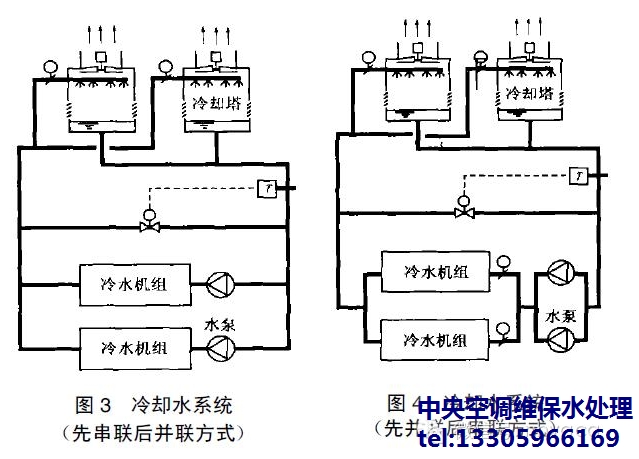 冷却水系统循环水泵、冷却塔的设计和配置是否合理,直接影响到冷水机组冷凝热量的排放, 影响冷水机组的出力和运行稳定性。实际工程中, 由于冷却塔和冷水泵选择不当或性能不佳影响整个空调系统正常运行的情况时常可见。