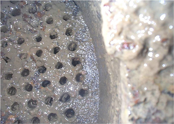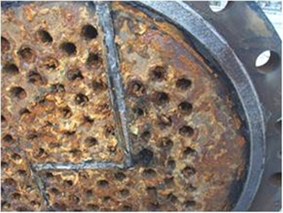 冷却水中富含碳酸氢钙等不稳定盐类,在换热管壁受热分解,即转变为碳酸钙等致密硬垢,规则沉积在换热管壁、冷却塔填料及系统管网等处。