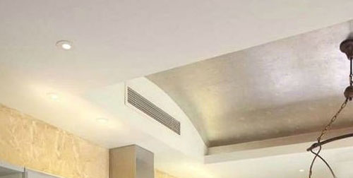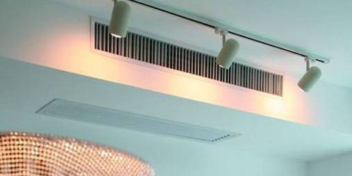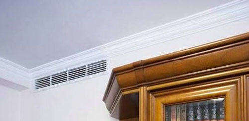 将长条形风口(送、回风口间隔1米以上)“嵌入”吊顶,既舒适又不影响美观,适合层高较高的家庭。