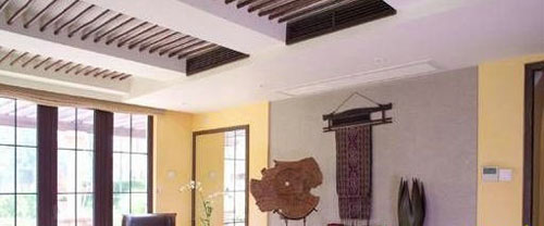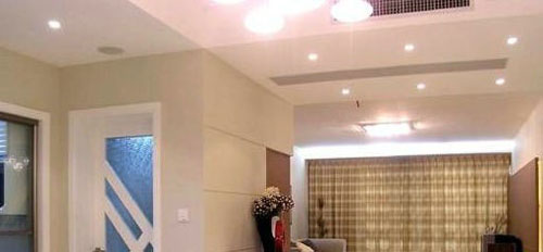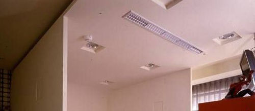 如果不想把吊顶做得太“花哨”,可以直接将风口装在(墙)面里,然后做一般的石膏吊顶。但一定要考虑好送风的区域性,尽量保证房间的每个角落都能“享受”到。
