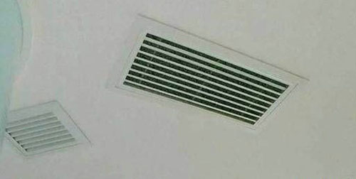 像这种装饰型风口,应配合与装潢相协调的风口材质。将它与吊顶融合在一起,整体感觉比较协调。